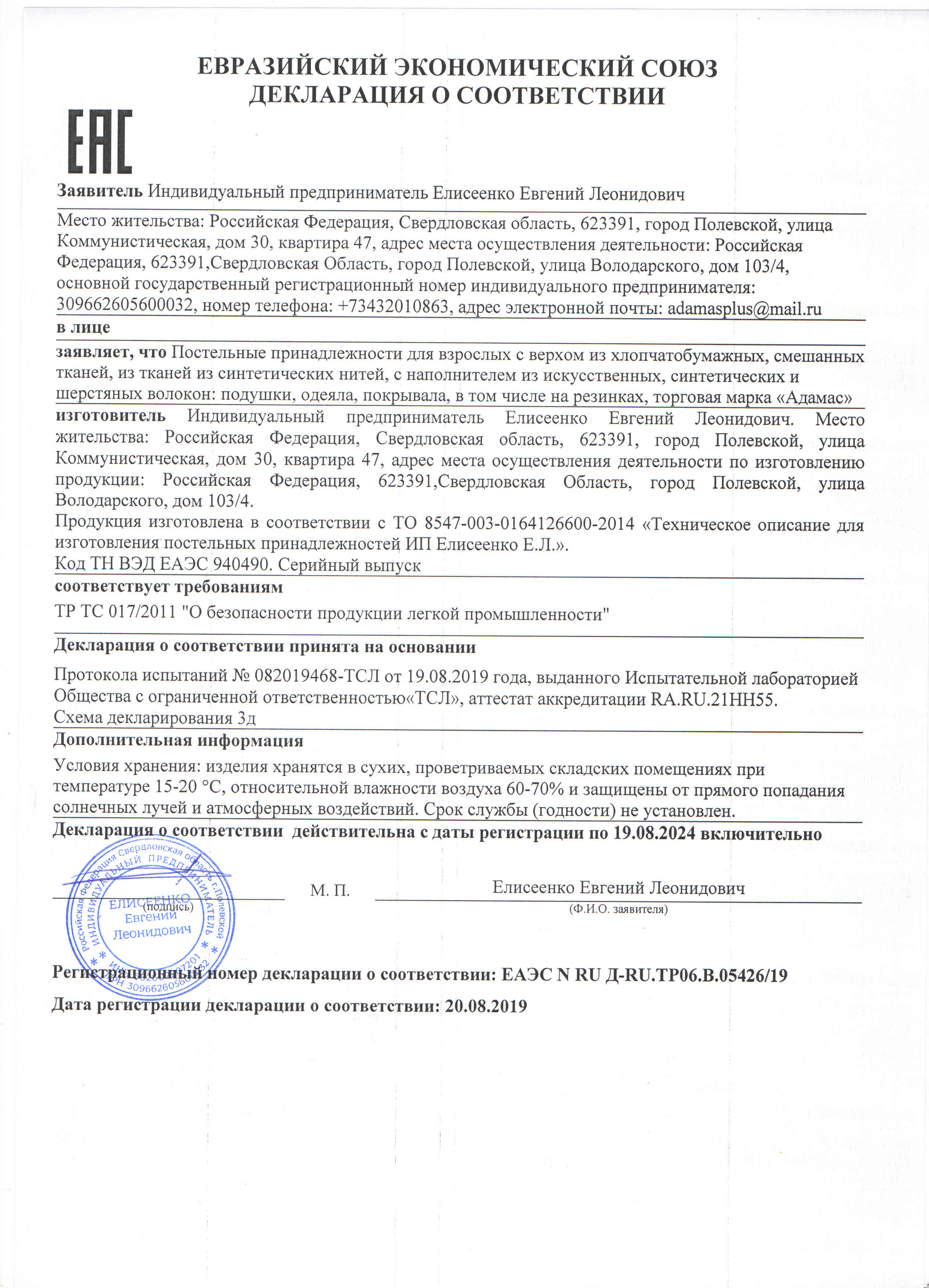 Наполнитель: Бамбуковое волокно. Плотность наполнителя: 150 гр./см2. Чехол: Полиэстер. Упаковка: Пакет 50 мкр. с прорубной ручкой