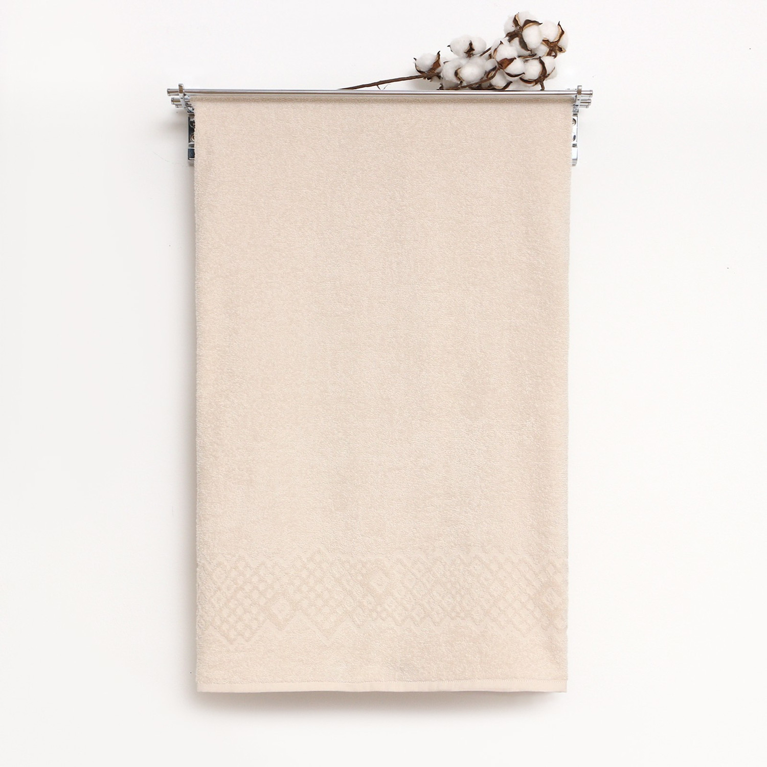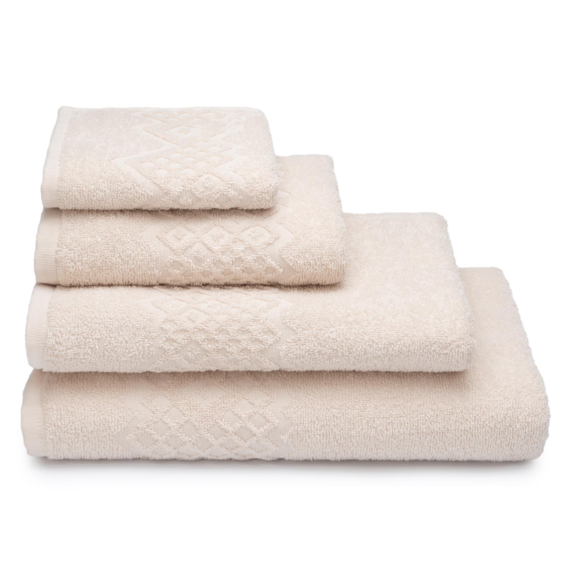 Махровое гладкокрашеное полотенце выполнено из 100%-ного хлопка. Замысловатый стилизованный узор передан рельефными геометрическими фигурами. Сочетание разных размеров ромбов создает визуальный эффект 3D. В цветовой палитре присутствуют базовые цвета (цвет кофе, топленое молоко, стальной, чистый серый), дополнительные цвета (арабский голубой, цвет Атлантиды, коралловый пион) и акцентные (цвет рубинового вина, карибского моря, мандариновый и наивный зеленый оттенки).