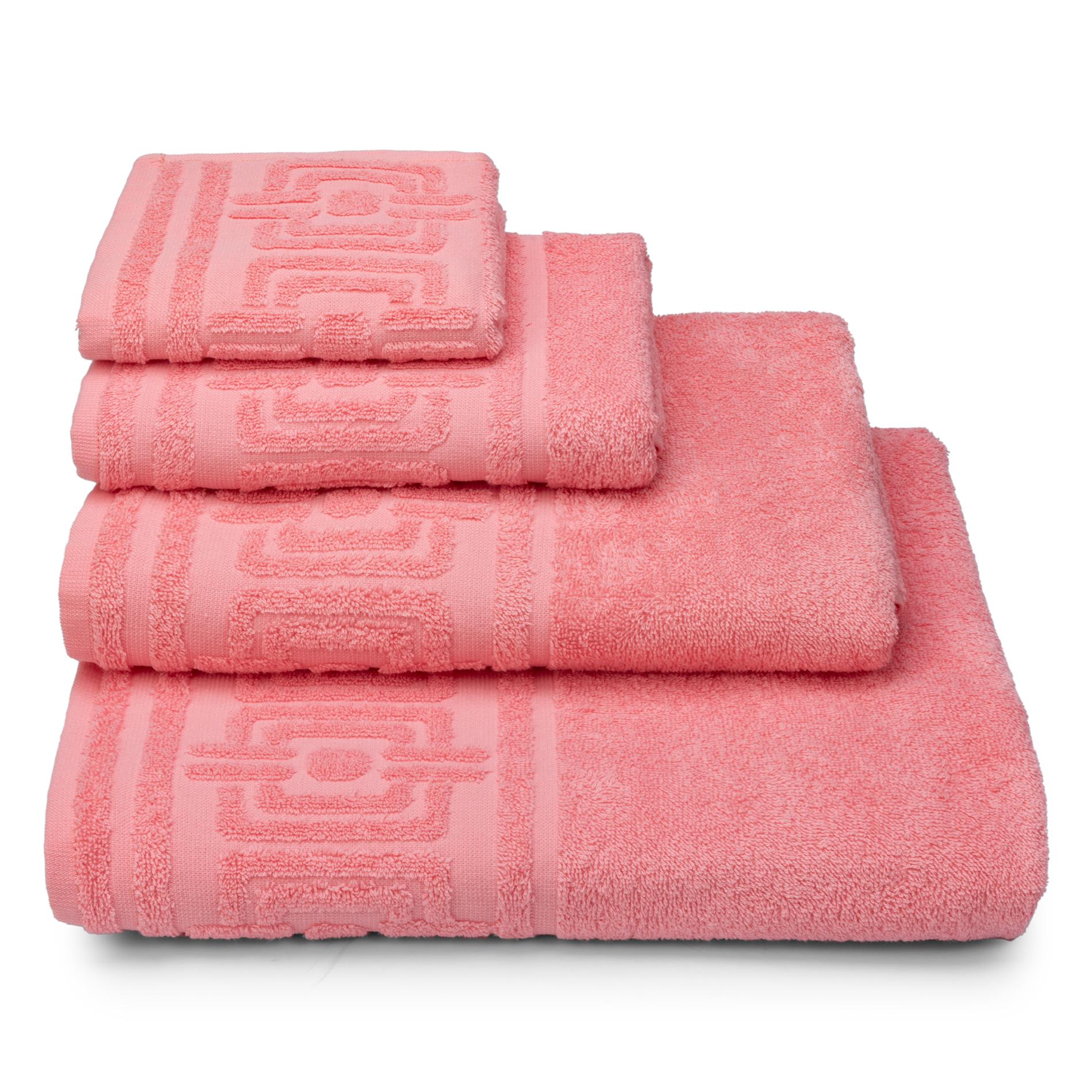 Облегченное полотенце представлено в широкой насыщенной цветовой палитре и украшено бордюром с рельефным рисунком в виде стилизованного орнамента «меандр».