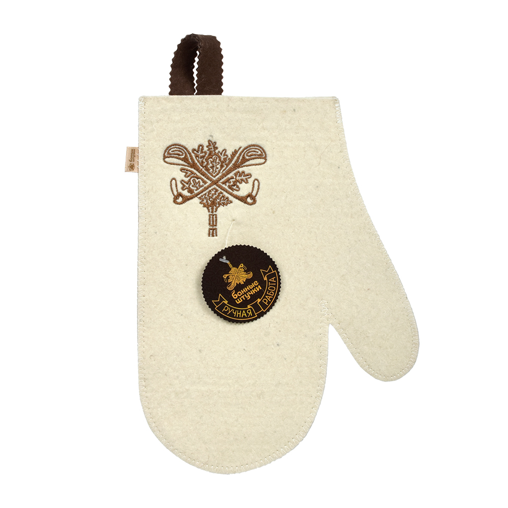 Рукавица банная "Банные штучки" с вышивкой белая, войлок 100% (41419) *1/20