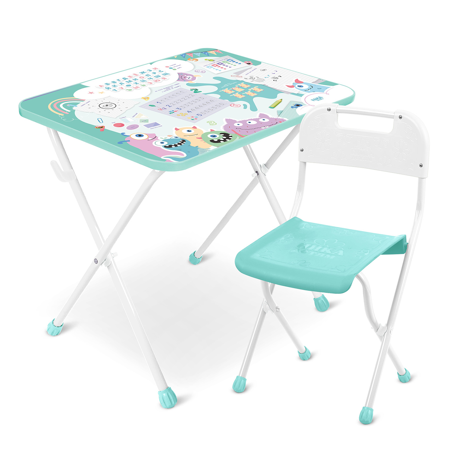 Классический комплект складной мебели, состоящий из стола и стула. Для детей в возрасте от 1,5 до 3 лет.