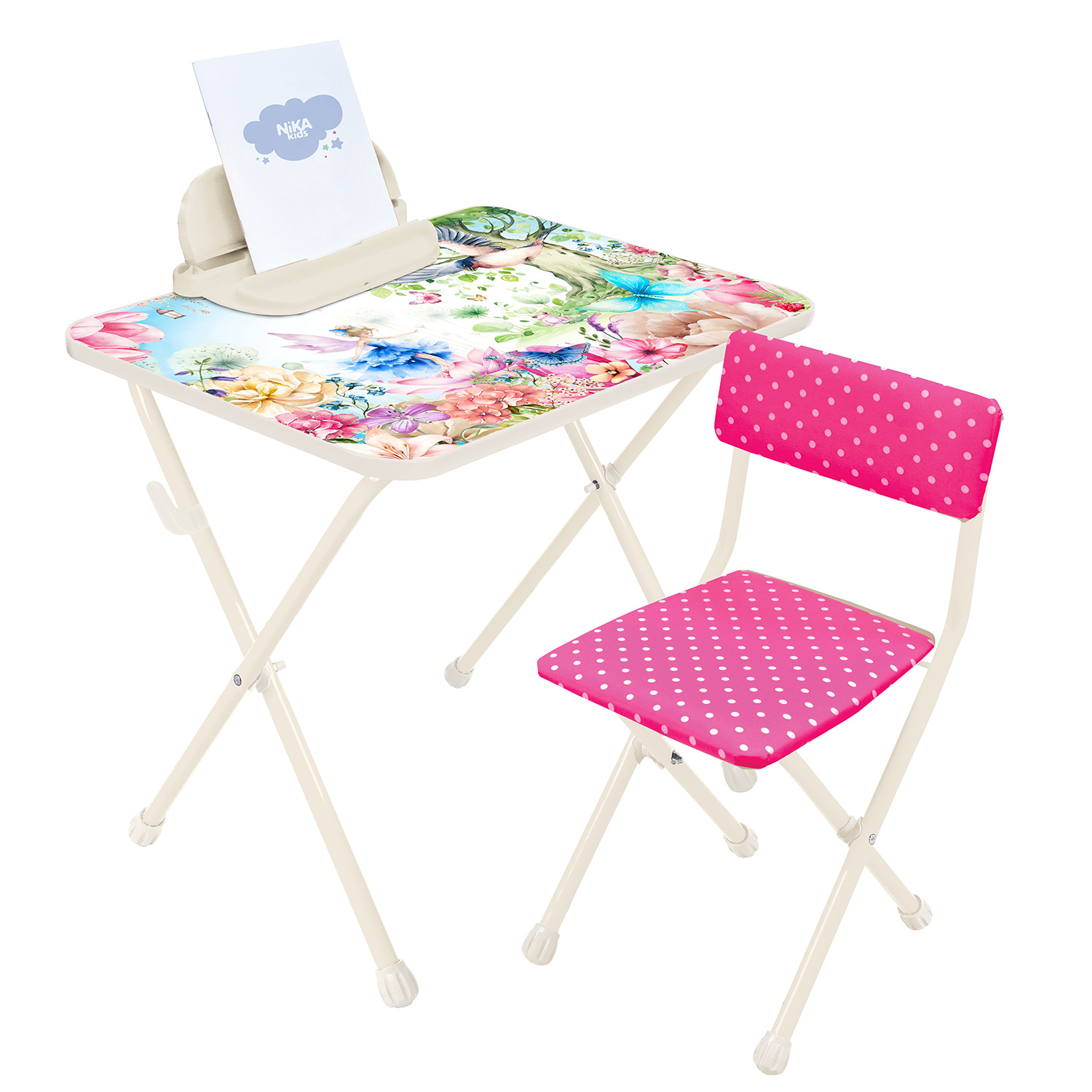 Классический комплект складной мебели, состоящий из стола и стула. Для детей в возрасте от 3 до 7 лет.