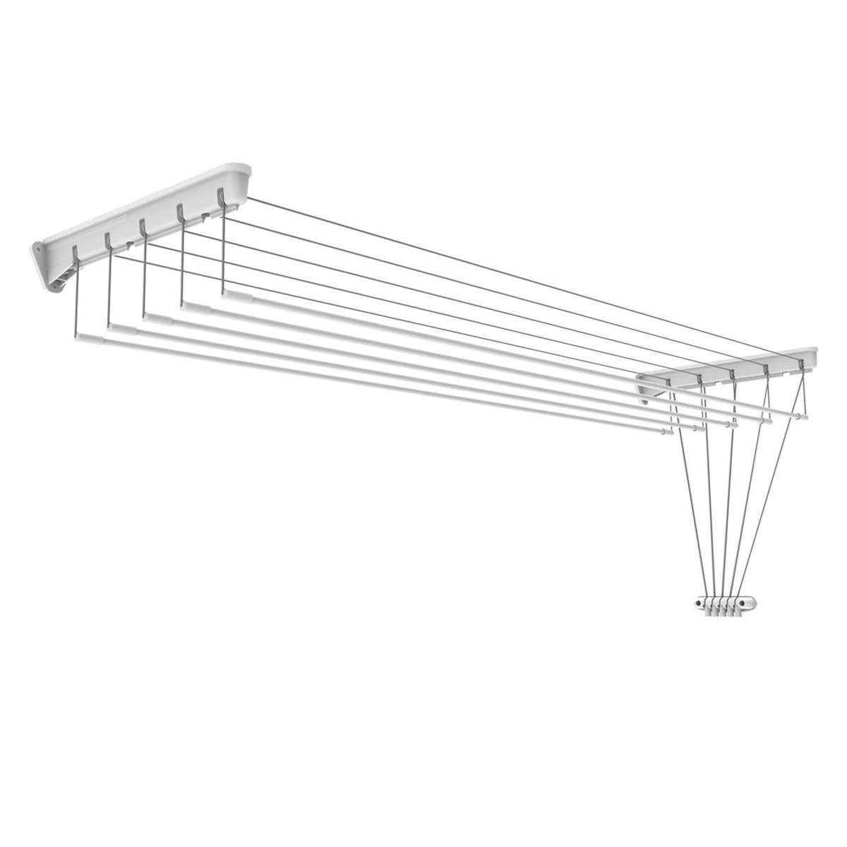 Компактная, подвесная настенно-потолочная сушилка для белья идеально подходит для любых помещений. Удобный лифт механизм значительно облегчает процесс развешивания белья.